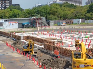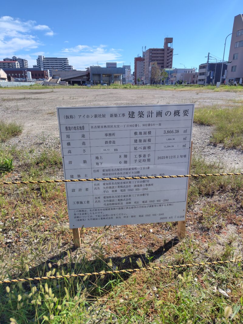 現在、アイホンの本社は栄にありますが、新社屋の完成後は本社がこちらのほうに移転し来る予定のようです。アイホンはかつて現場から近い熱田区内に本社を構えていて、新社屋が完成すれば”創業の地”に戻ってくる形となります。